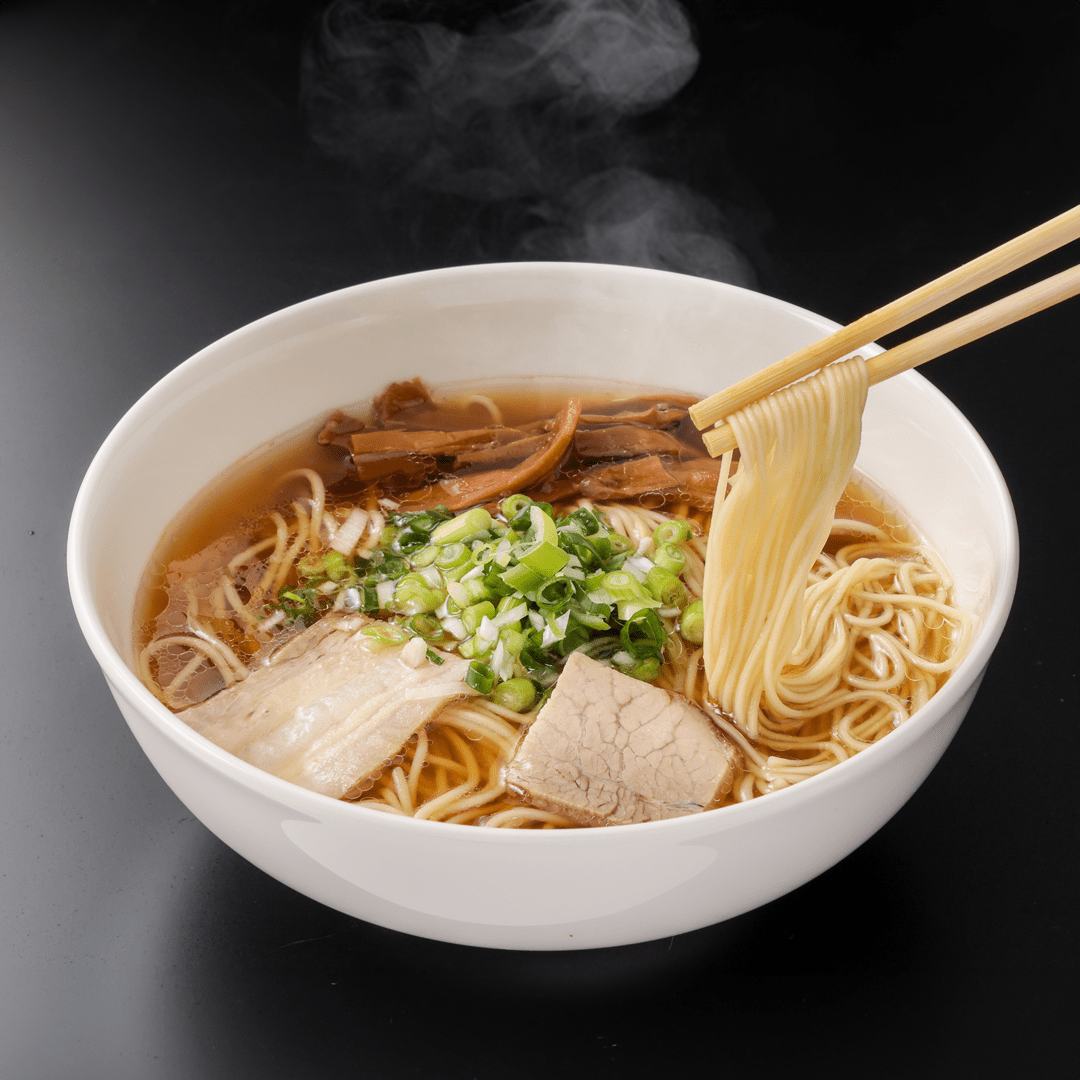 蕎麦のようにのど越しがよい自家製麺に、すっきりとしたコクと旨味を兼ね備えた味深いスープ。逸品の江戸前醤油ラーメン。